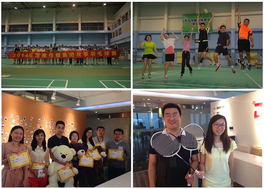 敏捷的身手、娴熟的技巧、激烈的扣杀,你不是在汤姆斯杯现场,这些都是青岛深度传媒有限公司的小伙伴们,所谓不打不相识,青岛深度传媒有限公司“羽你在一起”2014年秋季羽毛球赛让许多小伙伴不只是识了,更熟了。